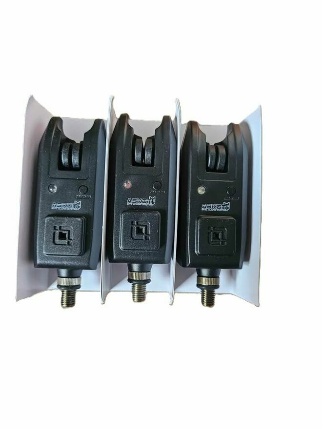 Zestaw trzech sygnalizatorów alarmowych Ultra Bissanzeiger Askom. Sygnalizatory te mają wbudowane zabezpieczenia i nowoczesny, kompaktowy design. Idealne rozwiązanie dla wędkarzy poszukujących niezawodnego systemu alarmowego.Możliwa wysyłka oraz za pobraniem